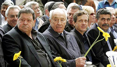פרץ, הרצוג, פרס ובן אליעזר בטקס. צילום: חיים צח