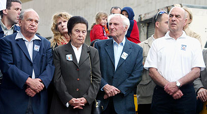 וילנאי, צ'יץ', אורה נמיר ולובה אליאב ליד האנדרטה בת"א. צילום: עופר עמרם