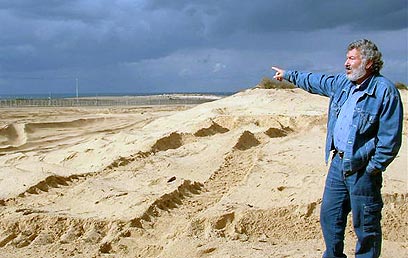 הוא מדבר בשקט אל מול ההריסות, הנראות ככתם אפור בין הדיונות הזהובות. אחר כך הוא מביט מערבה, אל הים, אל הגבעה שכונתה "גבעת פרחן",