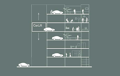 הביצוע פשוט למדי. במקום להחנות את המכונית בחניון תת-קרקעי או ברחוב, כל דייר מקבל קוד גישה למעלית גדולה, אליה הוא נכנס עם המכונית. הקשת הקוד לוקחת אותו ישירות לקומה בה הוא גר, שם מחכה לו מרחב גדול ופרטי לחניה. במרחב הזה ניתן גם לאחסן ציוד לרכב או לבצע בו טיפולים, מעין מוסך פרטי אם תרצו. ולאחר שהחנתם את המכונית, כל מה שנותר לכם הוא לצאת ממנה עם המצרכים מהמכולת, לפתוח את הדלת לדירה ואתם בבית. גאוני, לא?