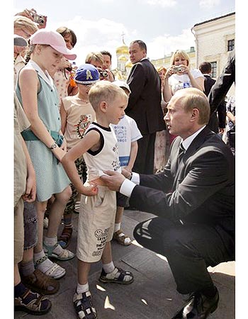 "...אבל אז עשה פוטין משהו בלתי צפוי לחלוטין. הוא חייך לעברו של הילד, הרים את חולצתו ונישק אותו בבטנו. הילד נותר נטוע במקומו..." [התמונה הבאה מגיעה מקישור שלא מתחיל ב https ולכן לא הוטמעה בדף כדי לשמור על https תקין: http://www.ynet.co.il/PicServer2/20122005/822578/MOSB113_hh.jpg] http://www.ynet.co.il/articles/0,7340,L-3268923,00.html