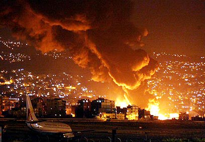 רובע בו מתגוררים בכירים בחיזבאללה וכביש ביירות-דמשק הופצצו. חיל הים הפגיז את שדה התעופה של ביירות