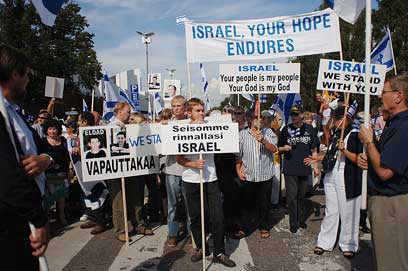כמעט שבוע אחרי סוף המלחמה בלבנון, התייצבו אמש (יום א') אלפי מפגינים בהלסינקי, בירת פינלנד, כדי להביע את תמיכתם בישראל. בתהלוכת ההזדהות - אותה איבטחו עשרות שוטרים - לקחו חלק יהודים מהקהילה המקומית ואזרחים פינים אחרים. "החלטנו לעורר את התושבים של הלסינקי להיבטים אחרים", הסביר ל-ynet ירון גורש, איש עסקים הנשוי לאזרחית פינלנד ומתגורר בהלסינקי כבר 18.