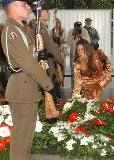 Miss Puerto Rico, Thebyam Carrion Alvarez lays flowers at the Tomb of the Unknown Soldier in Warsaw, Poland, Friday, Sept.1, 2006. Contestants from around the world are arriving in Poland to take part in the Miss World 2006 pageant, with the final on Sept. 30. (AP Photo/Alik Keplicz)
