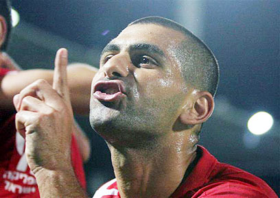 טועמה מסמן לקהל של מכבי לשתוק, אחרי השער
