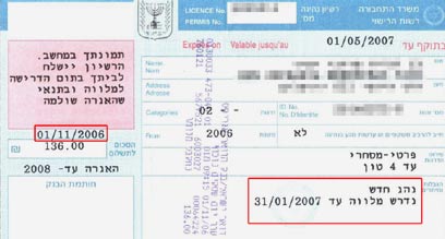 דוגמה לרישיון שגוי. למרות הכתוב, תקופת הליווי לנהג הספציפי תיגמר תוך חודשיים - ב-31 בדצמבר 2006