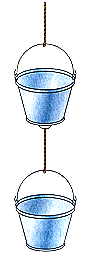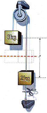 4) דלי צבעיים שמסתו 2.5 ק"ג תלוי על חבל חסר מסה הקשור אל דלי נוסף שמסתו 2.5 ק"ג. הדלי הנוסף תלוי אף הוא על חבל חסר מסה (מתואר בציור).