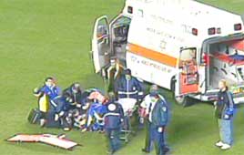 הרגעים הקשים על הדשא. מטפלים במני לוי (צילום - יוסי רוט)
