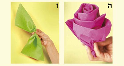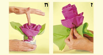 חוזרים על הפעולות עם המפית הוורודה השנייה.