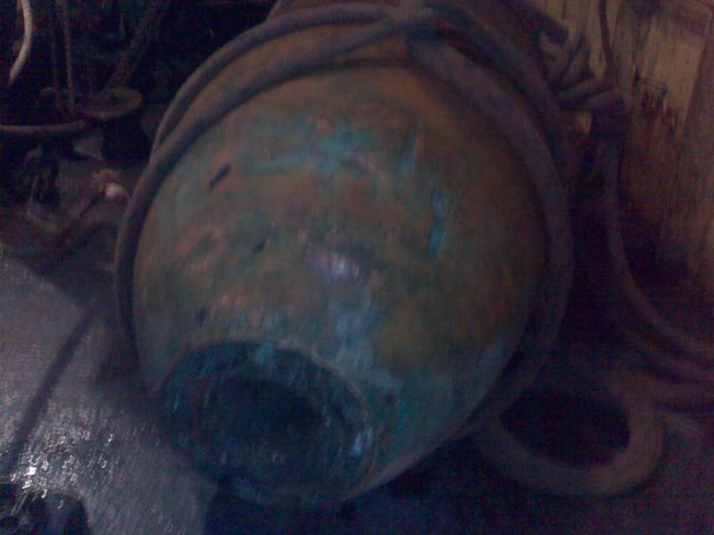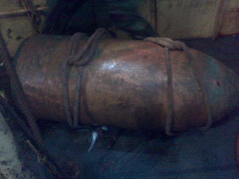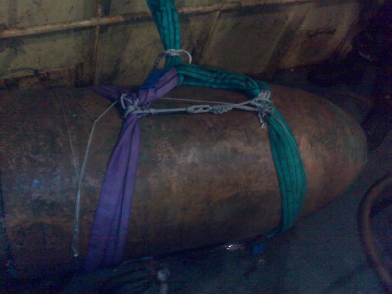 [Picture: Royal Navy] The trawler Katherine M had been fishing off of Cawsands Bay on Sunday afternoon, when on lifting her nets she discovered large brass item some four feet long [1.2m] and 21 inches [53cm] in diameter. The duty watch from the Southern Diving Unit, who were at the time dealing with an incident in Swansea, were tasked to deal with the item