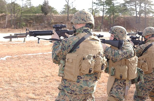FORT DIX, N.J.- Reserve Marines from Company F, 2nd Battalion, 25th Marine Regiment, 4th Marine Division based in Albany, N.Y., conduct Combat Marksmanship Program live-fire training here on Jan. 12.