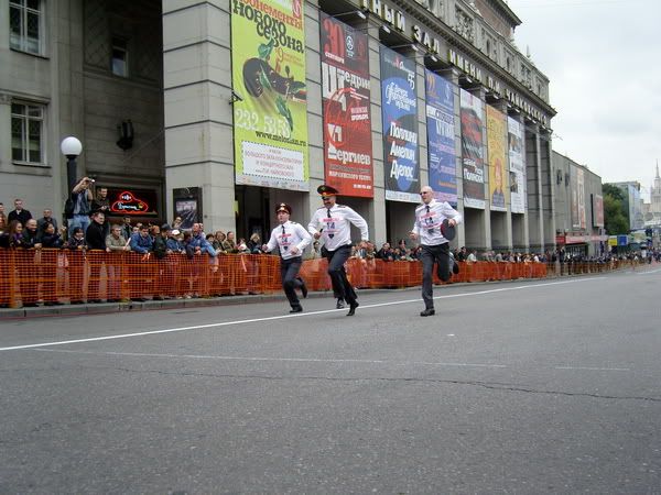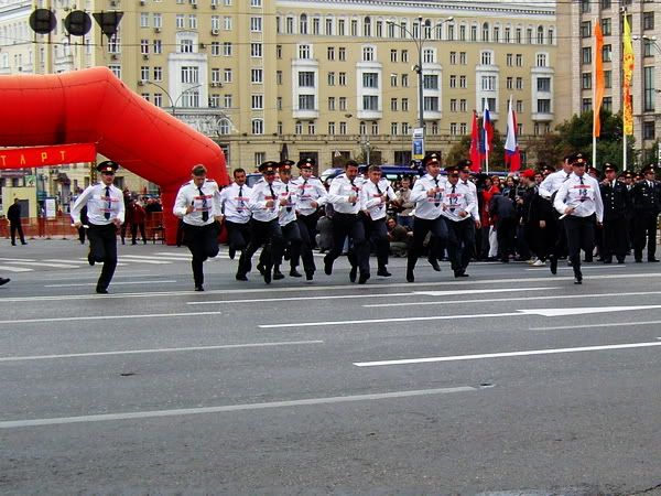 The start and finish of yearly 38-th Police relay race dedicated to 860-th anniversary of Moscow foundation.