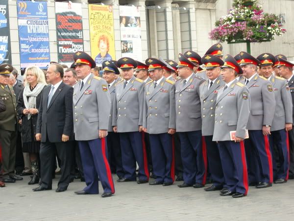 Police generals and VIPs watching the yearly 38-th Police relay race dedicated to 860-th anniversary of Moscow foundation