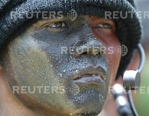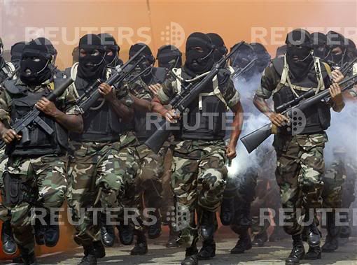 A member of the Nicaraguan special troop attends a parade to commemorate the 28th anniversary of its founding in Ciudad Sandino September 1, 2007