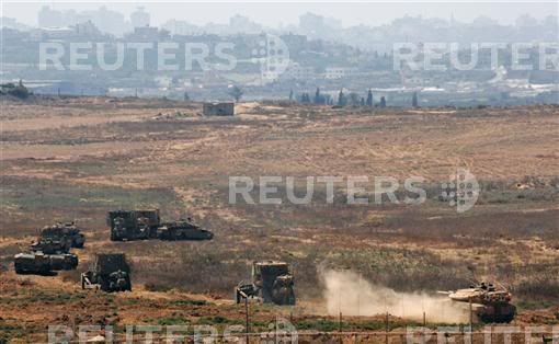 A convoy of Israeli army armoured vehicles moves in the northern Gaza Strip September 2, 2007