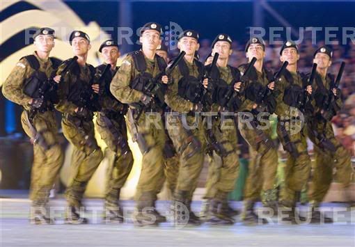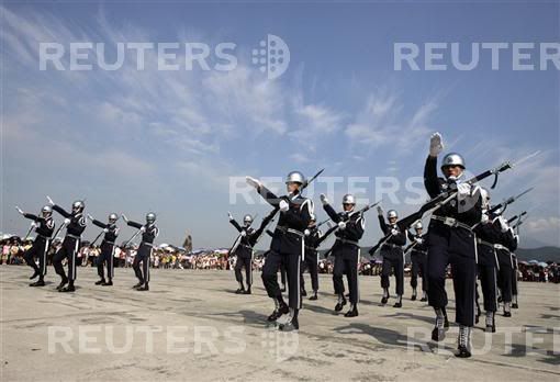 The Taiwan honour guard performs during an airforce demonstration in Songshan airport in Taipei September 2, 2007