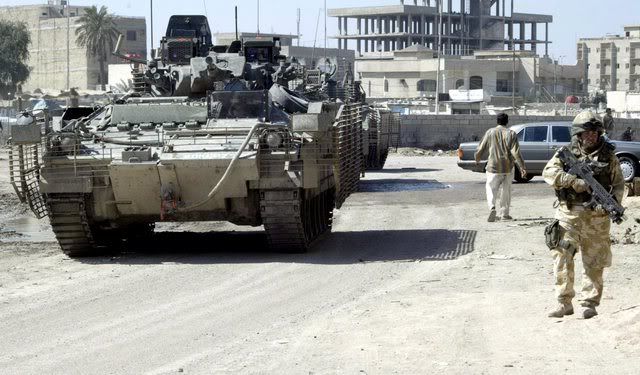A handout photograph released 03 September 2007 showing British forces returning to the contingency operating base following the handover of Basra Palace to the Iraqi Palace Protection Force, in Basra, Iraq, 03 Sepetember 2007. The 550 soldiers have handed Basra Palace over to Iraqi control and joined 5,000 troops at Britain's last base, near the airport, outside the city