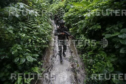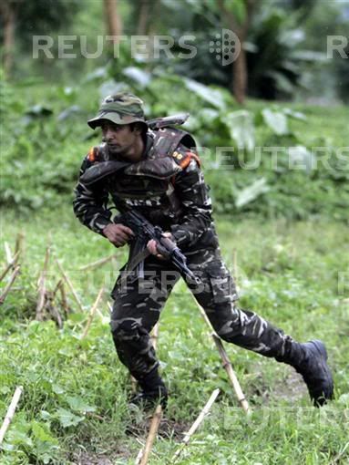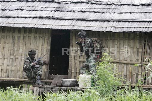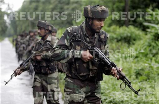 Soldiers of 'Ghatak', a special action force of the Indian Army, patrol during a Combat and Search Operation (CASO) in the forests of Manabhum, an insurgency affected area near the India-Mayanmar border in the north eastern state of Arunachal Pradesh September 8, 2007. Picture taken on September 8, 2007