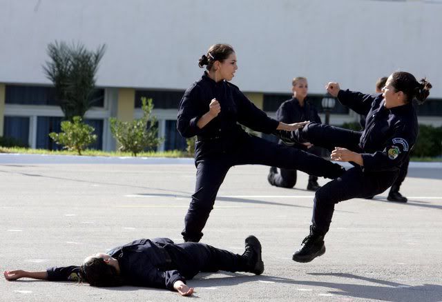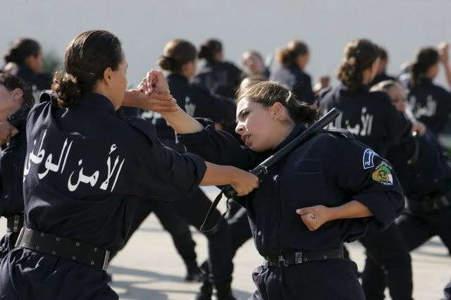 Algerian newly graduated special unit police women perform during a graduation ceremony held at Police Academy in Ain Benian, in Algiers City, 09 September 2007