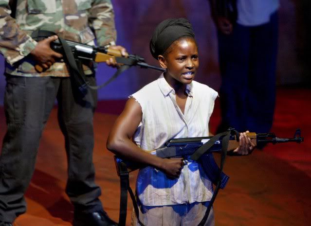 Mercy holds her machine gun In a scene from the world premiere of 'Butterflies of Uganda', in Los Angeles, California, USA 07 September 2007. The play is based on actual accounts of a young girl who was stolen from her home in Northern Uganda and forced to fight as a soldier in the Lord's Resistance Army (LRA)