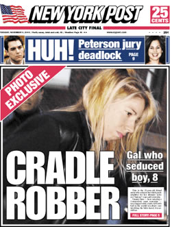 משום מה קוראים לזה סקס גם אם זה סקס מטורף באופן מיוחד. הסיפור הבא מתפרסם בניו יורק פוסט, על השער פנטזיית הסקס: אם בת 29, ילד שחור בן 8: גברת בת 29, פיתתה ילד שחור, בן 8, חבר של ביתה, לעשות איתה סקס מטורף. הילד גילח את שיער ערוותה של האישה, ושימש כבובת המין שלה. בתה של האישה "תפסה" את ה"זוג" על חם: ראיתי אותו מקצר לאמא שת השיער בפיפי, אמרה הילדה בגועל. זה היה מגעיל.