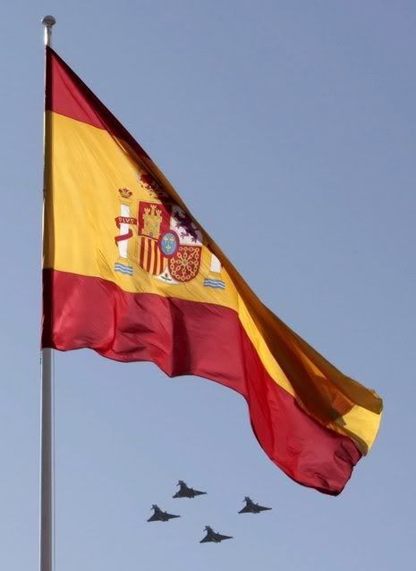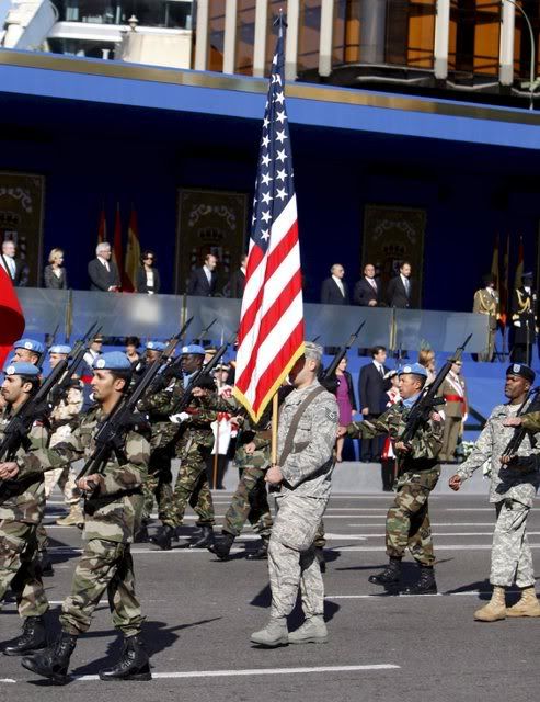 ) holds a US flag during a military parade to mark Spain's National Day in Madrid, Spain, 12 October 2007. Spain marks its National Day amid tight security following a car bombing on 09 October in Bilbao blamed on armed Basque separatist group ETA