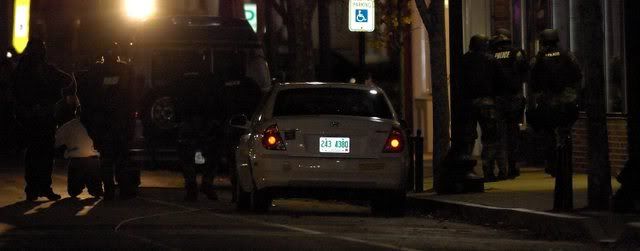 Elementos da PJ recolhem vestigios após a explosão que esta madrugada vitimou um homem na sua viatura junto à saída do parque de estacionamento de um bar, perto do aeroporto de Lisboa, 02 de dezembro de 2007. Police at the scene where a stripper bar owner was killed by a bomb in his car. Lisbon.