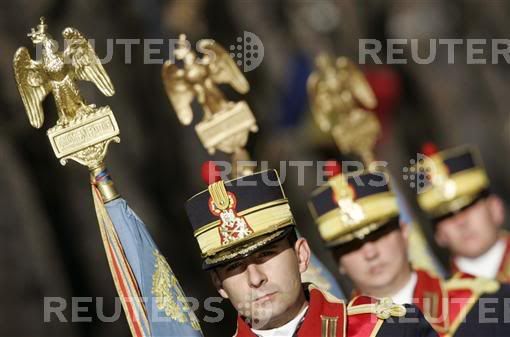 Jordan's King Abdullah II (C) reviews a guard of honour before the inauguration of the new parliamet in Amman on 02 December 2007. The King called on Israel to end the occupation of Arab and Palestinian lands to guarantee a safe future for the region's peoples and its coming generations.