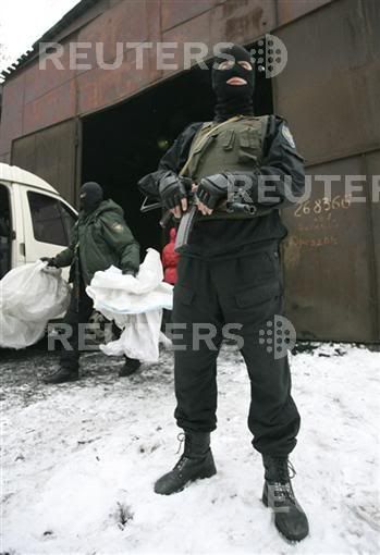 Spanish Civil Guard members carry the coffin of officer Raul Centeno upon its arrival at Getafe's airbase in Getafe town, ouside Madrid, Spain 02 December 2007. Centeno, 24, was shot dead and his comrade Fernando Trapero was seriously injured 01 December 2007 in Cap-Breton, some 60 km from Bayona (France) as they had worked in a anti-terrorist vigilance operation in cooperation with French police. Apparently both Spanish policemen were recognized by three ETA terrorist band's members as they had for breakfast in a coffe shop in Capbreton (France).