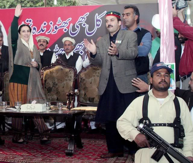 A Palestinian child in military fatigues and carrying a toy assault rifle stands watching the proceedings of a Palestinian policewoman's graduation ceremony in the Palestinian police training facility in the West Bank town of Jericho on 02 December 2007. They will soon be deployed in the Palestinian Authority areas. The Palestinian Authority and Israel will sit down soon and begin their negotiations on the 'core issues' of a peace deal