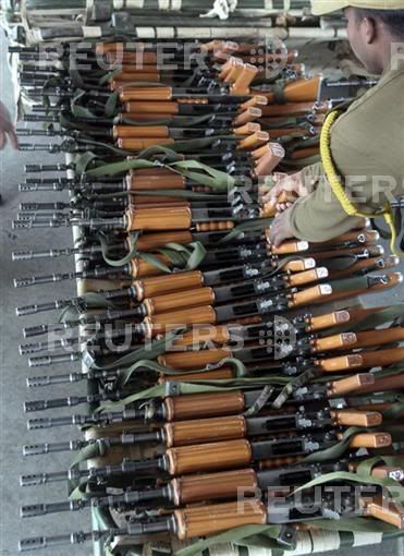 An array of booty was shown, including some new AK-47 rifles and uniforms which were still in their packaging, evidently unused.