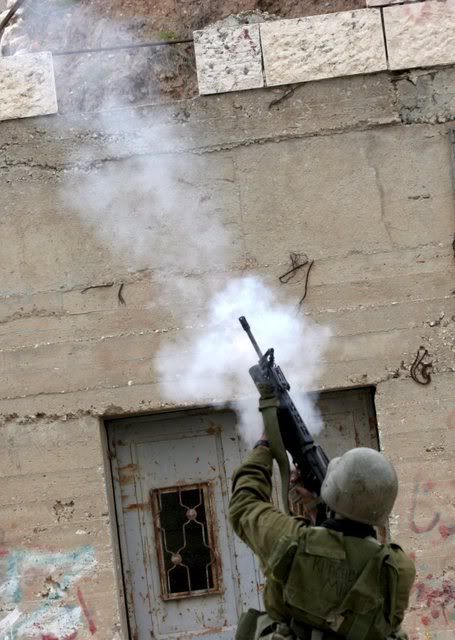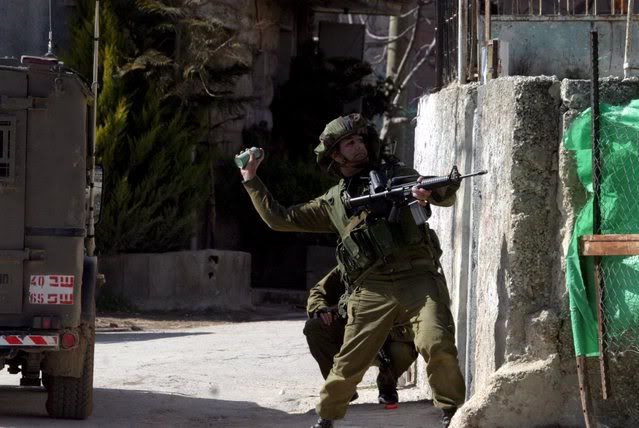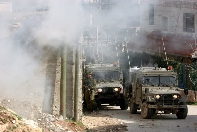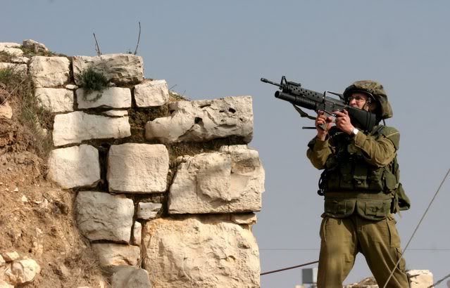 Israeli soldiers pictured during clashes in Village Beit Omar in the West Bank city of Hebron, 25 January 2008. Israeli troops reportedly fired at residents after they hurled rocks at troops, killing a teenager
