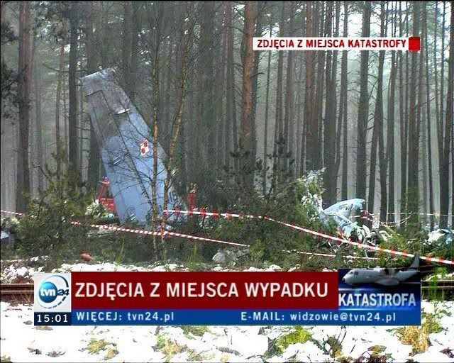 A TV grab taken 25 January 2008 from Polish television channel TVN 24: the site of the crash of military plane near Miroslawiec. Twenty airforce commanders, higher officers and enlisted men were killed Wednesday evening when their CASA C-295M transporter crashed near Miroslawiec in Western Pomerania