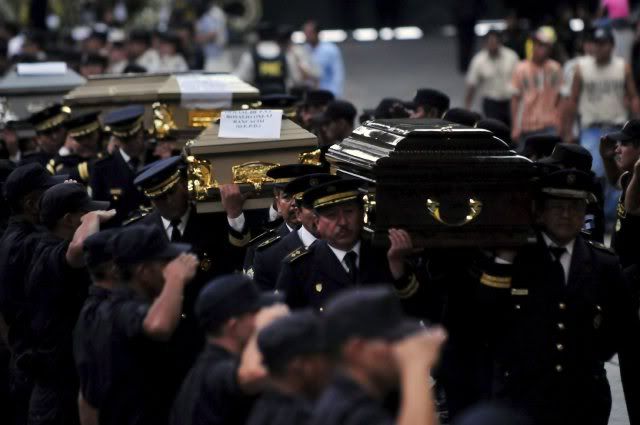 Quote: An alleged member of the notorious Mexican drugs cartel the Zetas (the Zeds in Spanish), German Torres Jimenez (C), is presented to the press after being arrested during a police operation in Mexico City April 25, 2009. Reuters