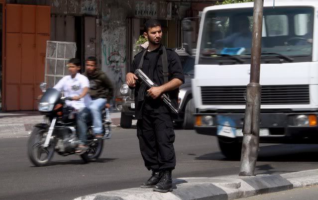 Quote: A Lebanese soldier stands on guard as an Israeli vehicle patrols the border with Lebanon, during a demonstration by schoolchildren from Hezbolla showing their support for Jerusalem being chosen as the Capital of Arab Culture, in Kfar Kila village in south Lebanon April 25,2009. Reuters