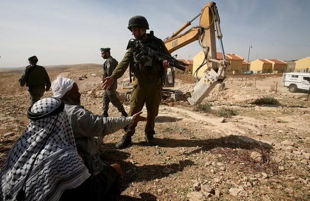 Quote: Israeli troops run to disperse demonstrators protesting Israel's controversial separation barrier in the West Bank village of Bilin, near Ramallah, on April 24, 2009. Some 30 protestors sustained mainly light injuries from rubber-coated bullets and tear gas fired by Israeli forces, the army and medics said. Israel says the projected 723 kilometres (454 miles) of steel and concrete walls, fences and barbed wire is needed for security, but the Palestinians view it as a land grab that undermines their promised state. ***** Images