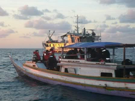 A handout photograph made available by the Australian Border Protection Command shows a boat intercepted by Border Protection Command off Australia's north coast on 29 April 2009. One boat carrying seven people was intercepted by the Customs boat Ashmore Guardian and HMAS Maitland. The second vessel was first spotted by air before a navy patrol boat and two customs vessels were sent to intercept it