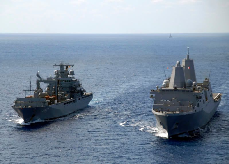 Landing craft from RFA Lyme Bay and HMS Bulwark land the troops ashore[Picture: LA(Phot) Shaun Barlow]