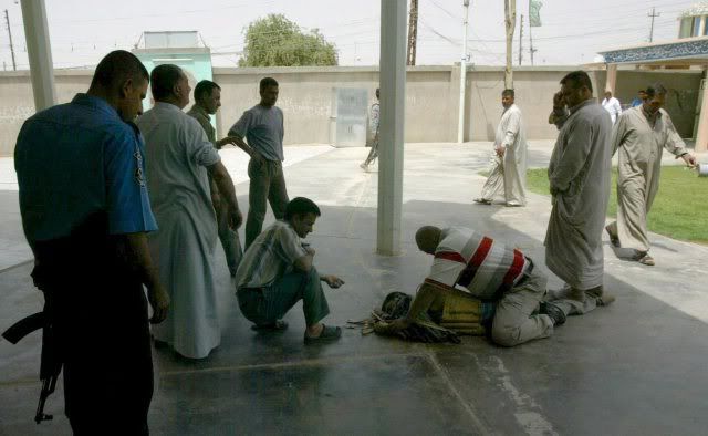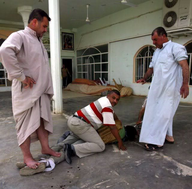 Iraqi soldiers inspect the area following a road side bomb which tragetted an Iraqi police patrol in the southern city of Basra, 550 kms from Baghdad on May 01, 2009. Prime Minister Gordon Brown hailed the end of British combat operations in Iraq, saying the two countries were opening a new chapter in their relations.