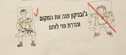 רונן, תושב בני ברק, נתקל במדבקה כזו. "רואים שם מין ילד כזה עם מדים ונעלי ספורט, שיושב על מושב ברכבת והחולצה שלו פתוחה, עם פס אדום שמייצג כאילו את הג'ובניקון", סיפר ל-ynet. "לצדו רואים חייל קרבי עם רובה ומעליו סימן וי. המדבקה מודבקת במעבר בין קרון לקרון, במקום ממש בולט לעין. זה פשוט מזעזע. זאת אפליה בין דם לדם. הייתי בשוק, זה בלתי יאמן בכלל. זאת פעם שנייה שאני נתקל בסטיקר, כבר ראיתי אותו לפני שבוע ברכבת אחרת".