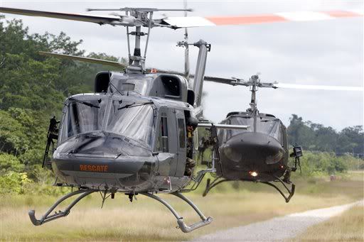Guatemalan Army officers prepare for an operation in Ixcan, Quiche north of Guatemala City, Guatemala on Monday, Aug. 21, 2006. The soldiers will search for a huge storage of weapons that the government is claiming belong to the leftist guerrillas disbanded in 1996. (AP Photo/Moises Castillo)