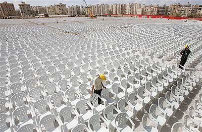 מאות אלפי כיסאות ערוכים לקראת העצרת בדאחיה (צילום: איי פי)