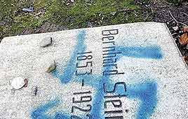 אלמונים חיללו אתמול (ב') 13 מצבות בבית עלמין יהודי בעיירה קֶהל, שבדרום-מערב גרמניה. על המצבות רוססו, בין היתר, צלבי קרס, והכתובות "היטלר חי" ו"הייל".