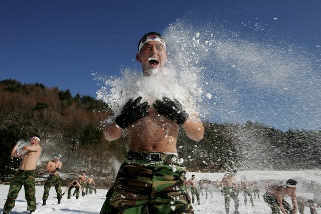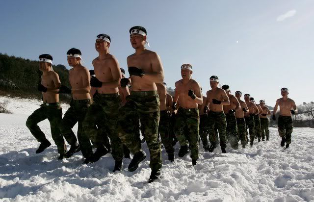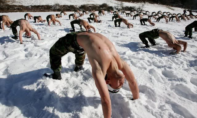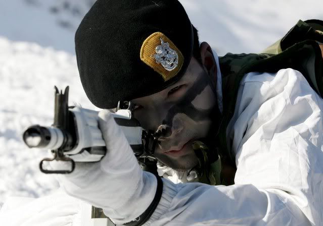 epa00899143 South Korean army special forces perform in the snow during a winter exercise in Pyeongchang, some 200km east of Seoul, Wednesday 10 January 2007. EPA/JEON HEONKYUN