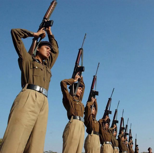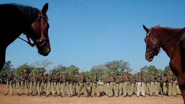 epa00899244 Madhya Pradesh police contigents during the rehearsal parade for the forthcoming Republic Day celebration in Bhopal, Madhya Pradesh on Wednesday, 10 January 2007. India is celebrating its Republic Day on 26 January 2007. EPA/SANJEEV GUPTA