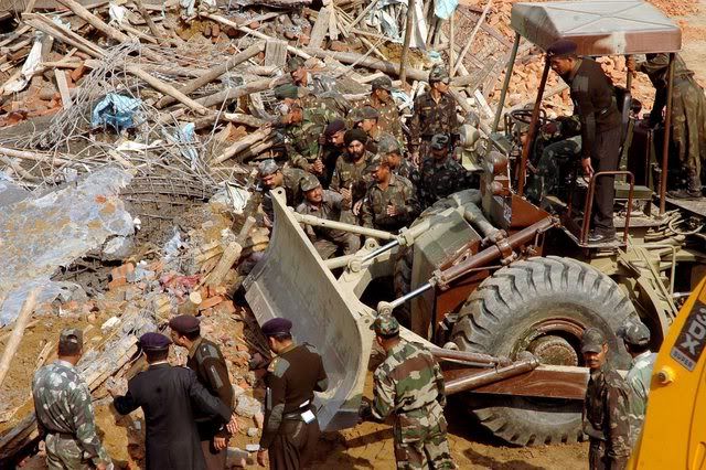 epa00899245 Indian Army soldiers clearing the debris of a collapsed building as they search for the bodies of labourers, in Allahabad,Uttar Pradesh in India on Wednesday, 10 January 2007. Eight laborers were killed and dozens of others injured, some of them seriously, when an under construction building collapsed early in the morning. EPA/BRIJESH JAISWAL
