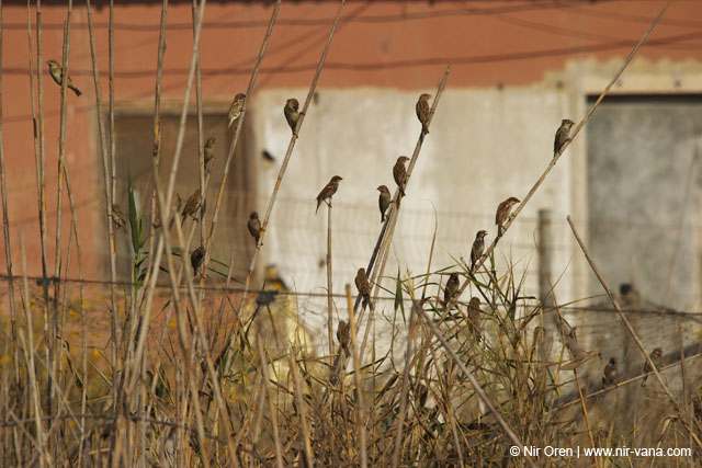 1. מה שאני אוהב בתמונה הזאת הוא שרואים את השונות בין כל דרור על גבי הקנים המבטים לכיוונים שונים והפעולות השונות. יכול שזה מה שניסית להראות?