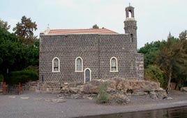 לרגל המילניום הוקם פה על ידי רשות הטבע והגנים, לובי לבאים מן הים בהפלגה. בסופו של דבר לא השתמש בו האפיפיור בעת ביקורו, ונותר פה מתחם רחב ידיים, שטח מסורק היטב עם עצי זית צעירים ודקלים נטועים באדמה החשופה המשמש את המגיעים בעיקר על מנת להוציא כמה שקלים על כוס קפה בחנות המזכרות, 'קודש לשמירת הטבע בארץ'. כמה מאות מטרים דרומה - מבנה הכנסייה היוונית בעל הכיפות הוורודת, ששוה ביקור בעיקר בגלל הציורים המרהיבים על קירותיו ותקרותיו. מכאן ואילך שוב טבע - הדרך פתוחה עד למזרח האגם, ושביל סובב כנרת מסומן. עד הערב אהיה כבר ברמות.