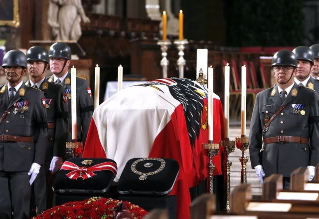 Members of the Waldheim family following a military jeep carrying the coffin of former Austrian President and UN Secretary General Kurt Waldheim into the Central Cemetery in Vienna 23 June 2007 during funeral ceremonies. EPA/Robert Jaeger