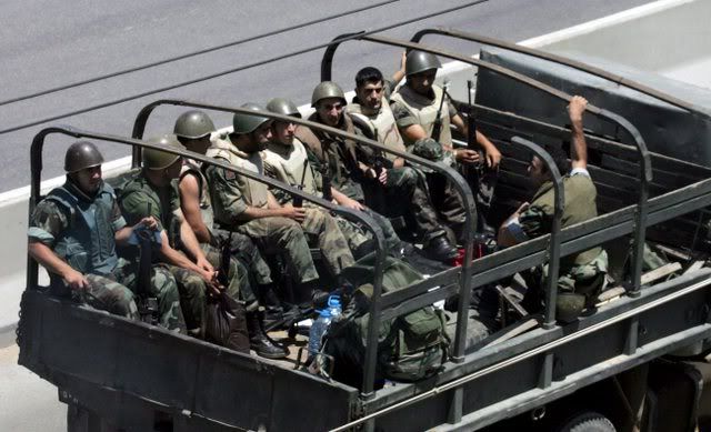 A Lebanese army vehicle patrols in front of the Palestinian Nahr al-Bared refugee camp in northern Lebanon , 23 June 2007. Lebanese troops shelled a Palestinian refugee camp in north Lebanon on Saturday after al Qaeda-inspired fighters shot dead a soldier and wounded three others. Security sources said Fatah al-Islam snipers hit the four soldiers at Nahr al-Bared camp. EPA/MOHAMED MESSARA
